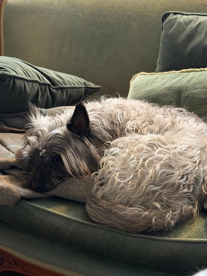 Create more artwork, spend time with my growing family, and have more time to walk my little Dog Barney. He is such a little rascal, he loves nothing better than creating a cosy nest by scraping the blanket and cushions down on the sofa!